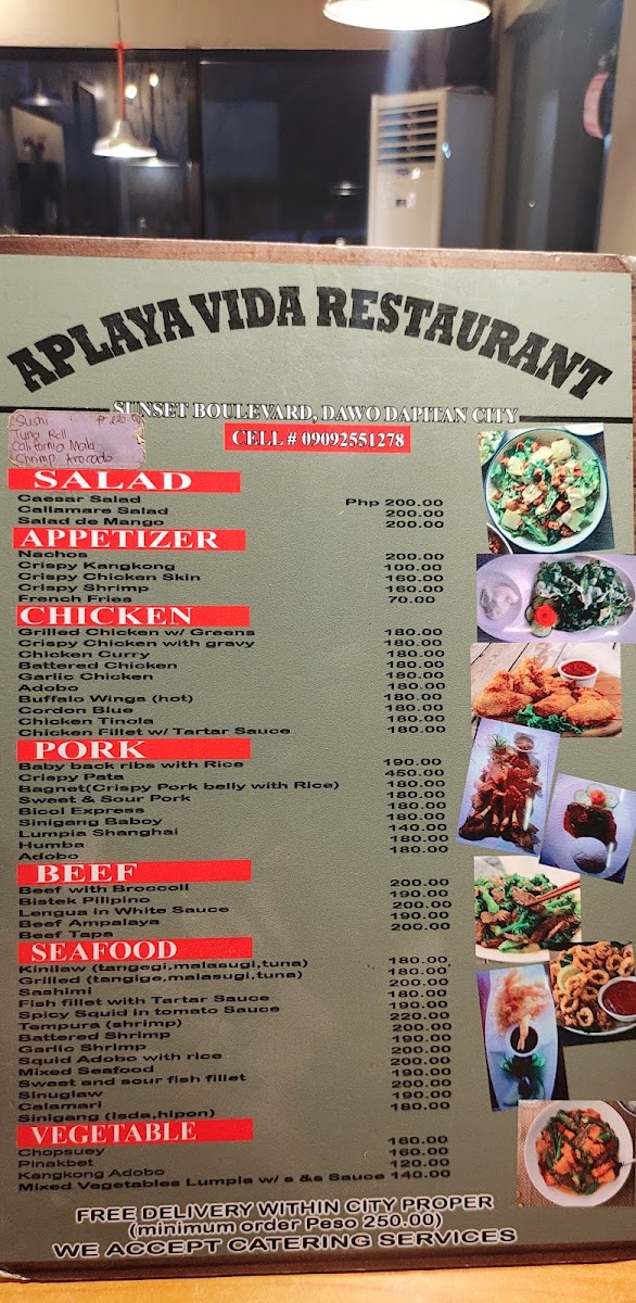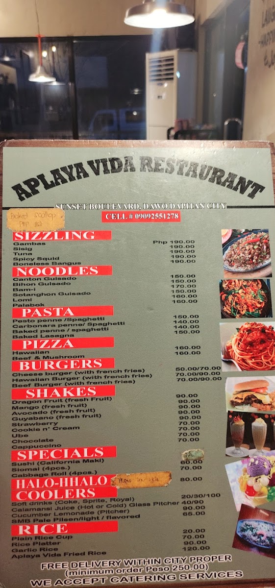 Welcome to Aplaya Vida, a charming seaside restaurant located at JCV7+PWF, Sunset Boulevard, Dawo, Dapitan City, Zamboanga del Norte, Philippines. This delightful eatery seamlessly merges a cozy coffee shop atmosphere with an expansive menu that brings the vibrant flavors of Filipino cuisine to the forefront. Reachable at +63 65 213 6495, Aplaya Vida is not just a dining spot but an experience that tantalizes the senses.